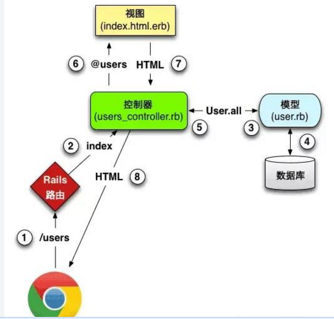 至于这一阶段发生什么?简而言之,首先浏览器发送过来的请求先经过控制器,控制器进行逻辑处理和请求分发,接着会调用模型,这一阶段模型会获取 redis db 以及 MySQL 的数据,获取数据后将渲染好的页面,响应信息会以响应报文的形式返回给客户端,最后浏览器通过渲染引擎将网页呈现在用户面前。