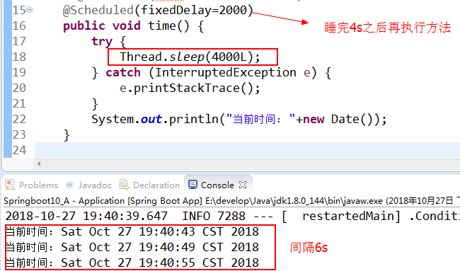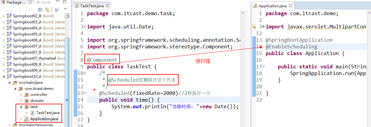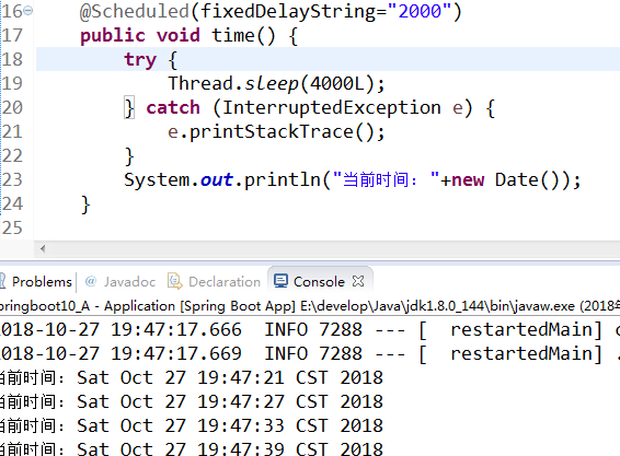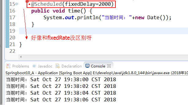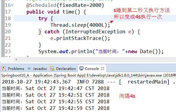 3)定时执行的方法加上注解 @Scheduled(fixedRate=2000) 定期执行一次