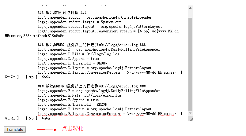 4、Log4j日志转换为logback在线工具(支持log4j.properties转换为logback.xml,不支持 log4j.xml转换为logback.xml)