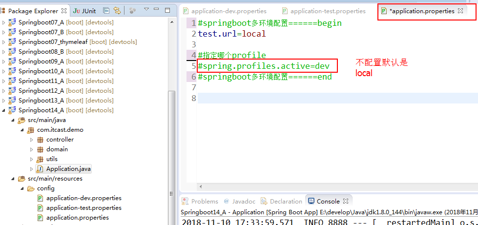 3、spring boot允许通过命名约定按照一定的格式(application-{profile}.properties)来定义多个配置文件