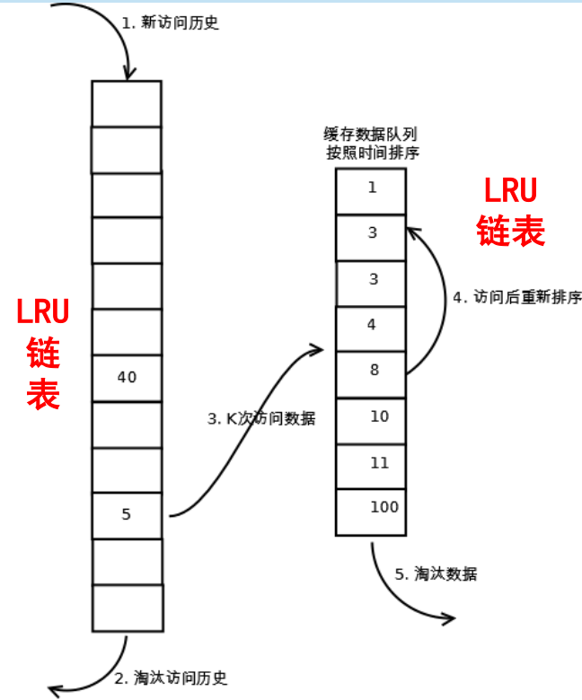 - 需要替换 frame 时,按照 lru 策略优先置换小于 k 次的链表