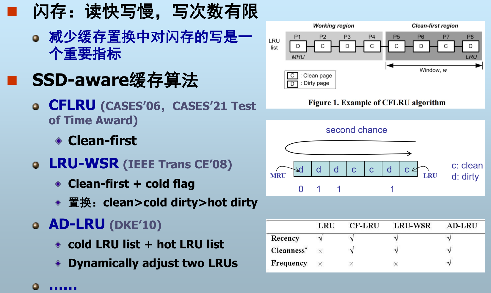 - 缓存污染 (sequential flooding): lru + repeated sequential scans
