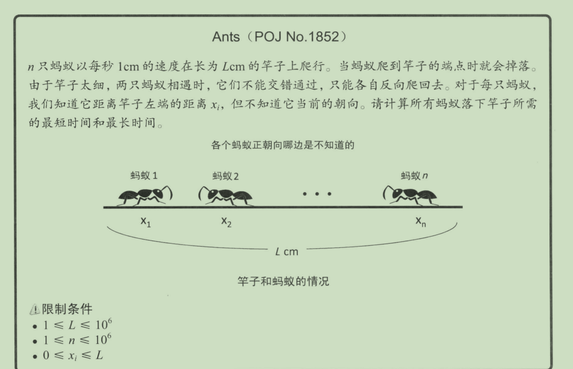所以对于一只蚂蚁而言 其最短离开杆子时间时min(x,L-x),最长时间 max(x,L-x)