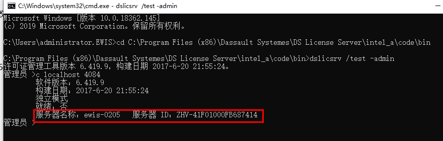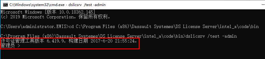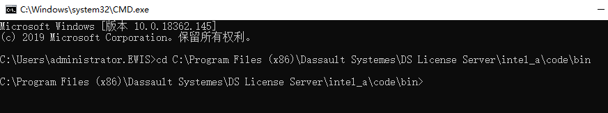 执行命令cd C:\Program Files (x86)\Dassault Systemes\DS License Server\intel_a\code\bin