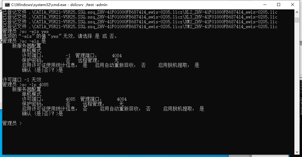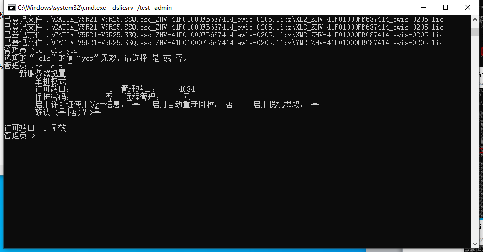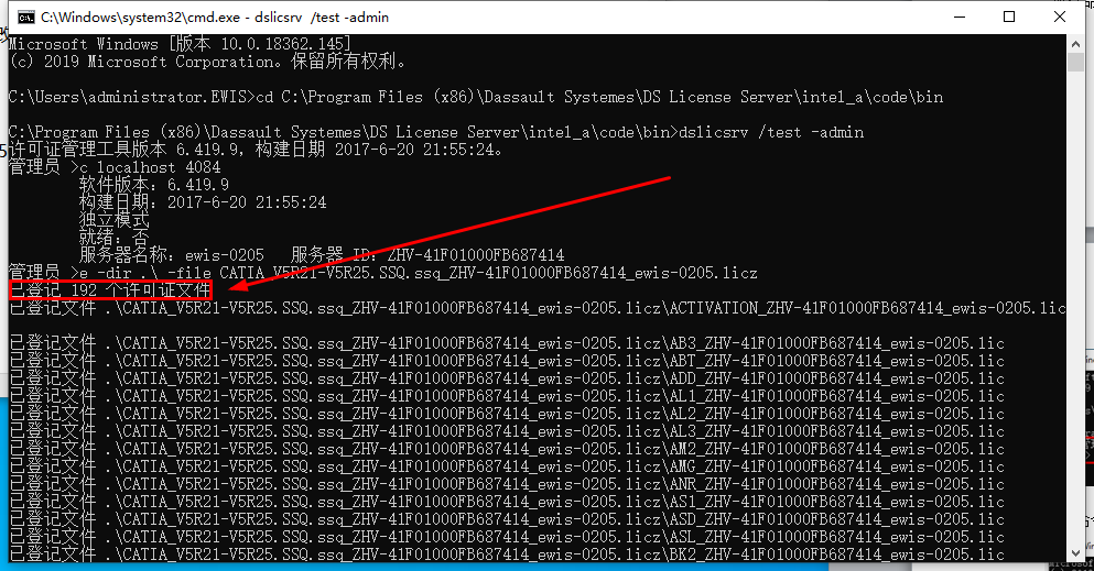 执行命令e -dir .\ -file CATIA_V5R21-V5R25.SSQ.ssq_ZHV-41F01000FB687414_ewis-0205.licz