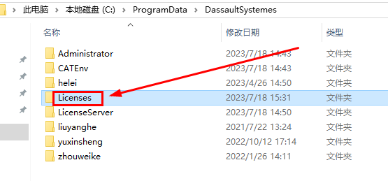 进入到C:\ProgramData\DassaultSystemes目录下新建文件夹Licenses(如果已存在请覆盖)