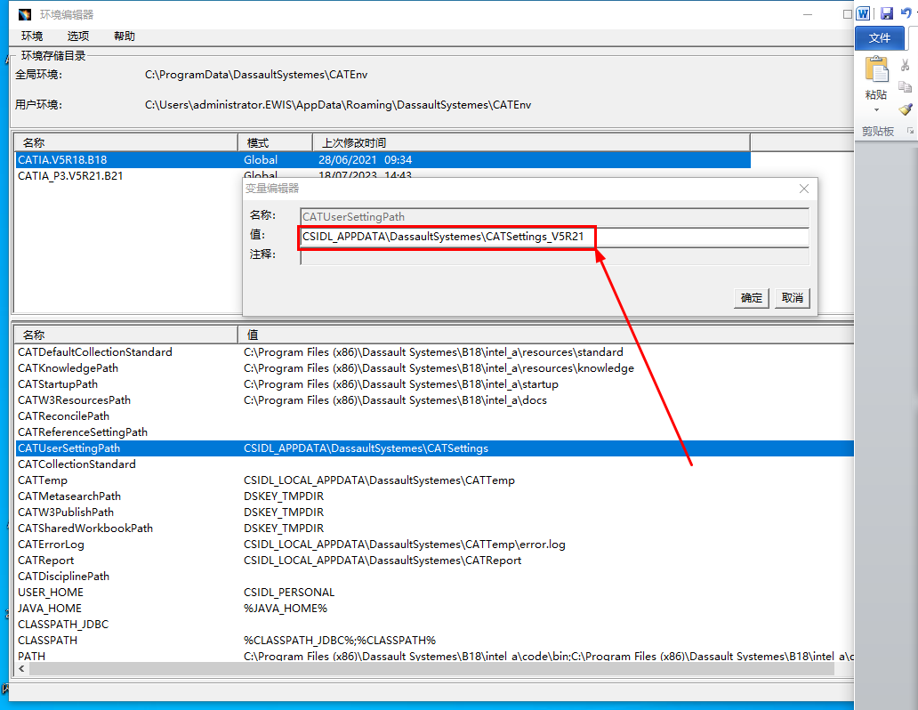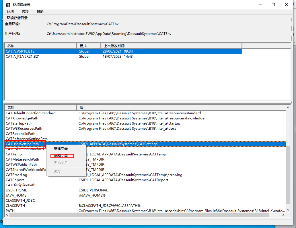 编辑变量,添加的后缀为_V5R21可以随意命名,目的是为了多版本应用。