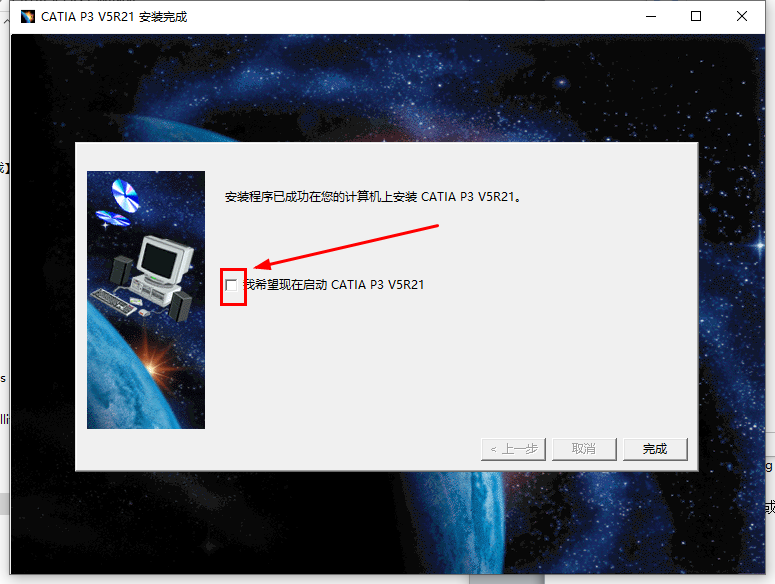 全程下一步或是或安装,注意最后一步,不要启动CATIA R21,点击完成。