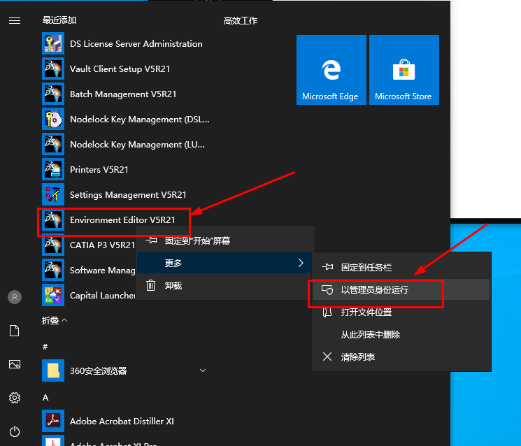 在开始菜单中,找到Environment Editor V5R21以管理员身份运行。