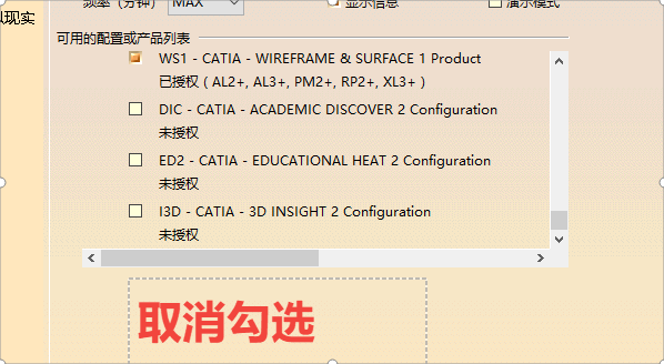 运行CATIA R21软件,在弹出的许可证配置选项卡中,全部选择中,其中,DIC,ED2,I3D这三个选项不选。