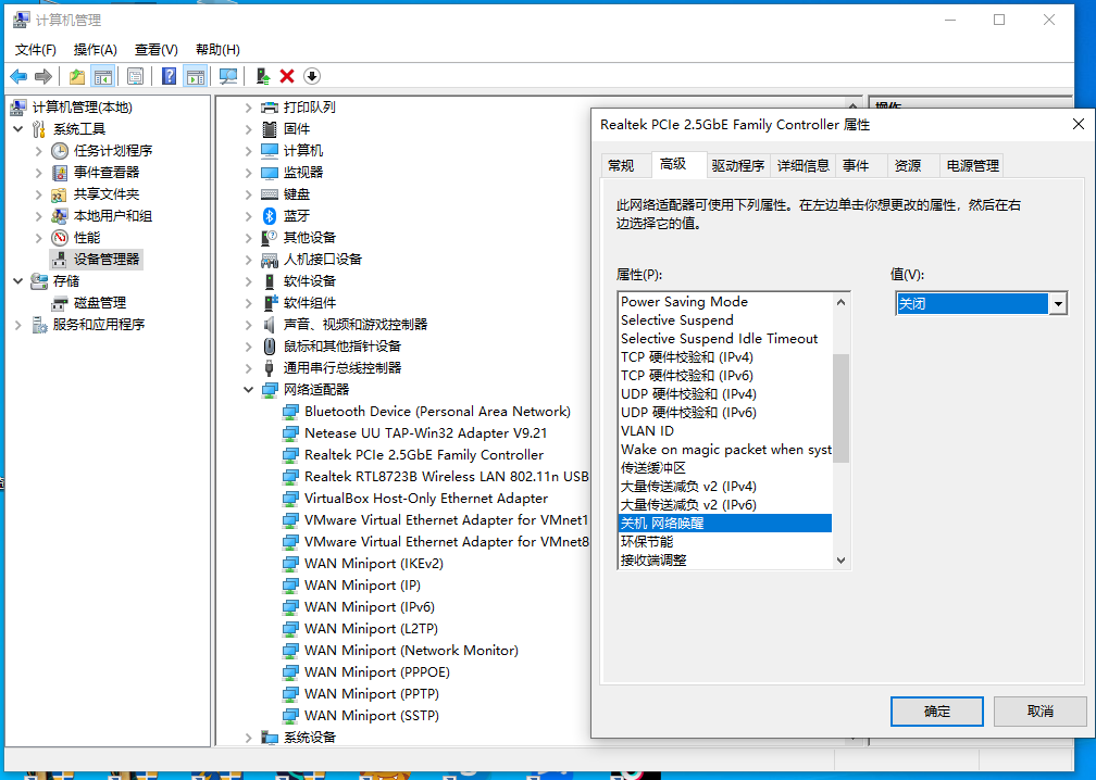 在于网卡唤醒设置。以下状态是无法唤醒设备的。