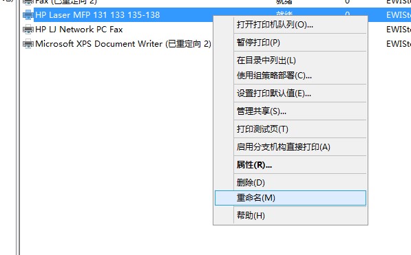 还有一个情况为,如果重名打印机名称也会出现该情况。