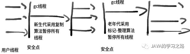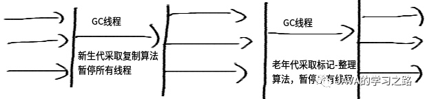 最基础的垃圾回收算法,分为两个阶段,标注和清除。标记阶段标记出所有需要回收的对象,清除阶段回