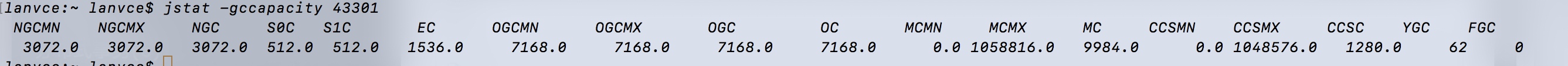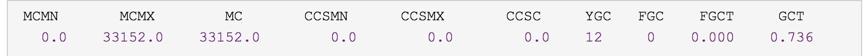 8.jstat -gcmetacapacity +pid JDK8 下 元数据空间统计