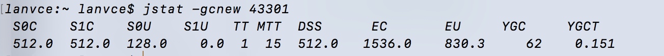 7.jstat -gcpermcapacity +pid JDK7 下 永久代空间统计