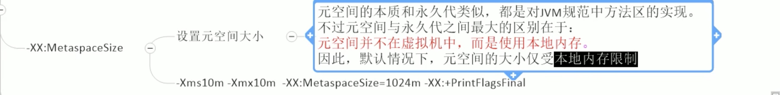 元空间的大小仅受本地内存限制。类的元数据放入 nativememory, 字符串池和类的静态变量放入 java 堆