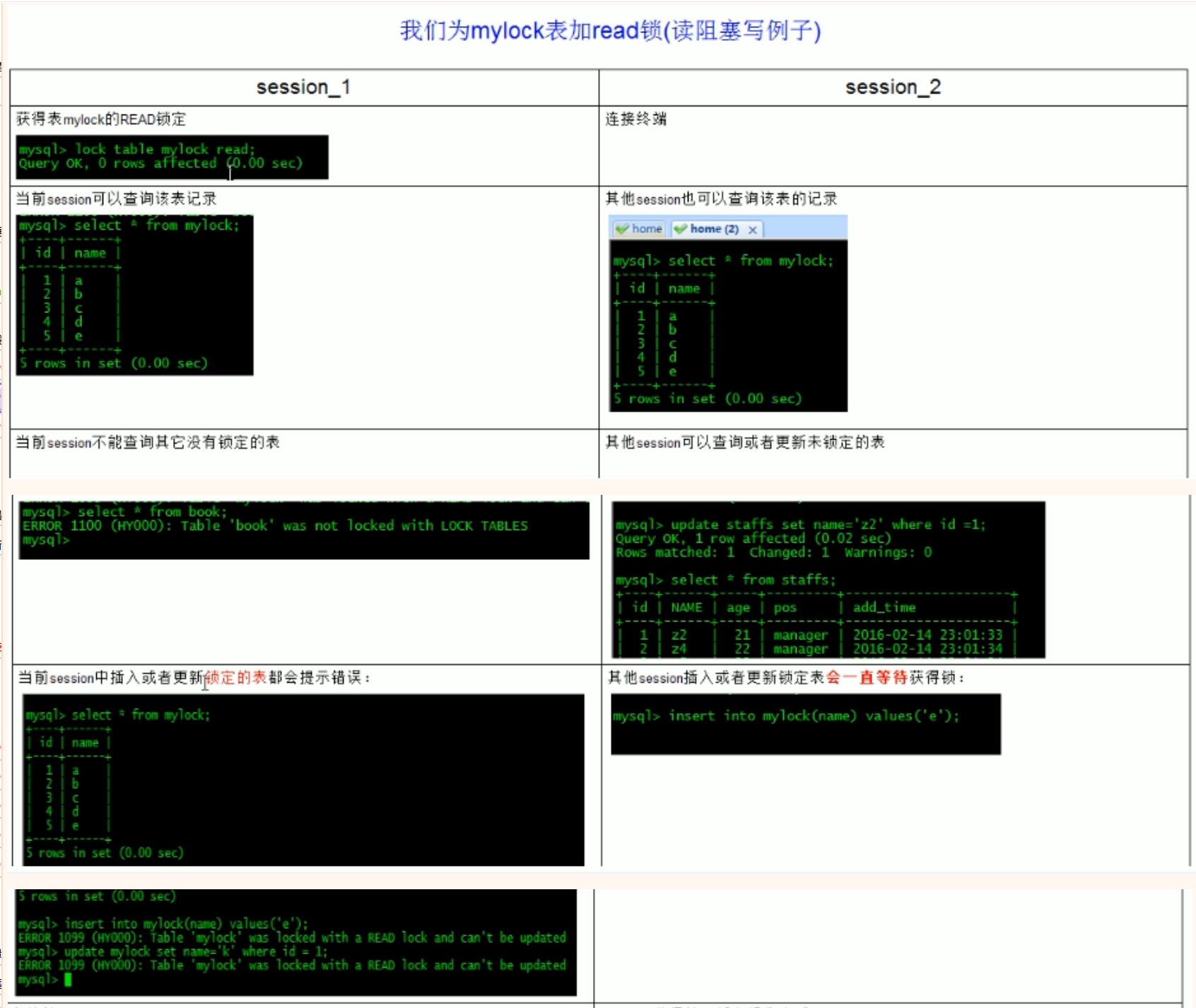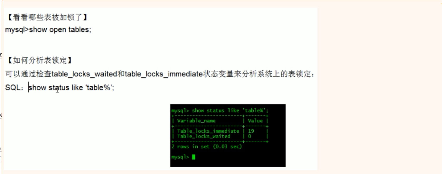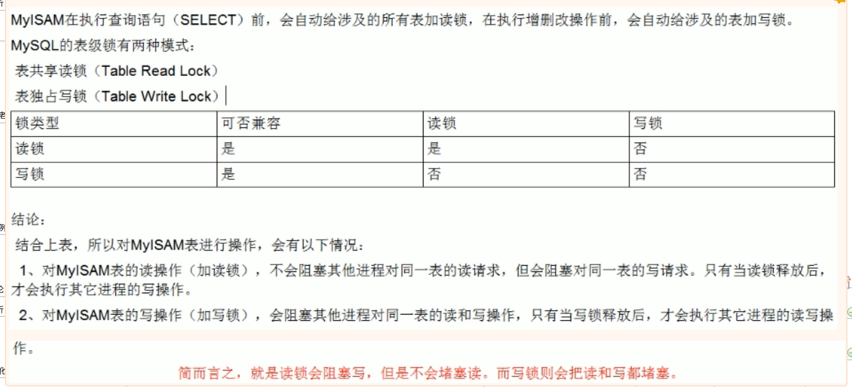 偏向MyISAM存储引擎,开销小,加锁快,无死锁,锁定粒度大,发生锁冲突的概率最高,并发最低