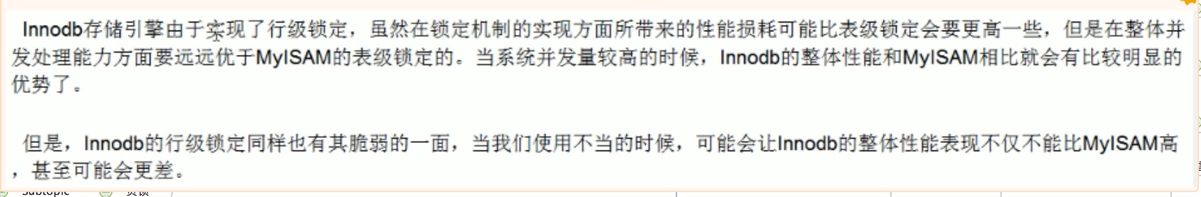 InnoDB与MyISAM的最大不同有两点:一是支持事务(TRANSACTION);二是采用了行级锁
