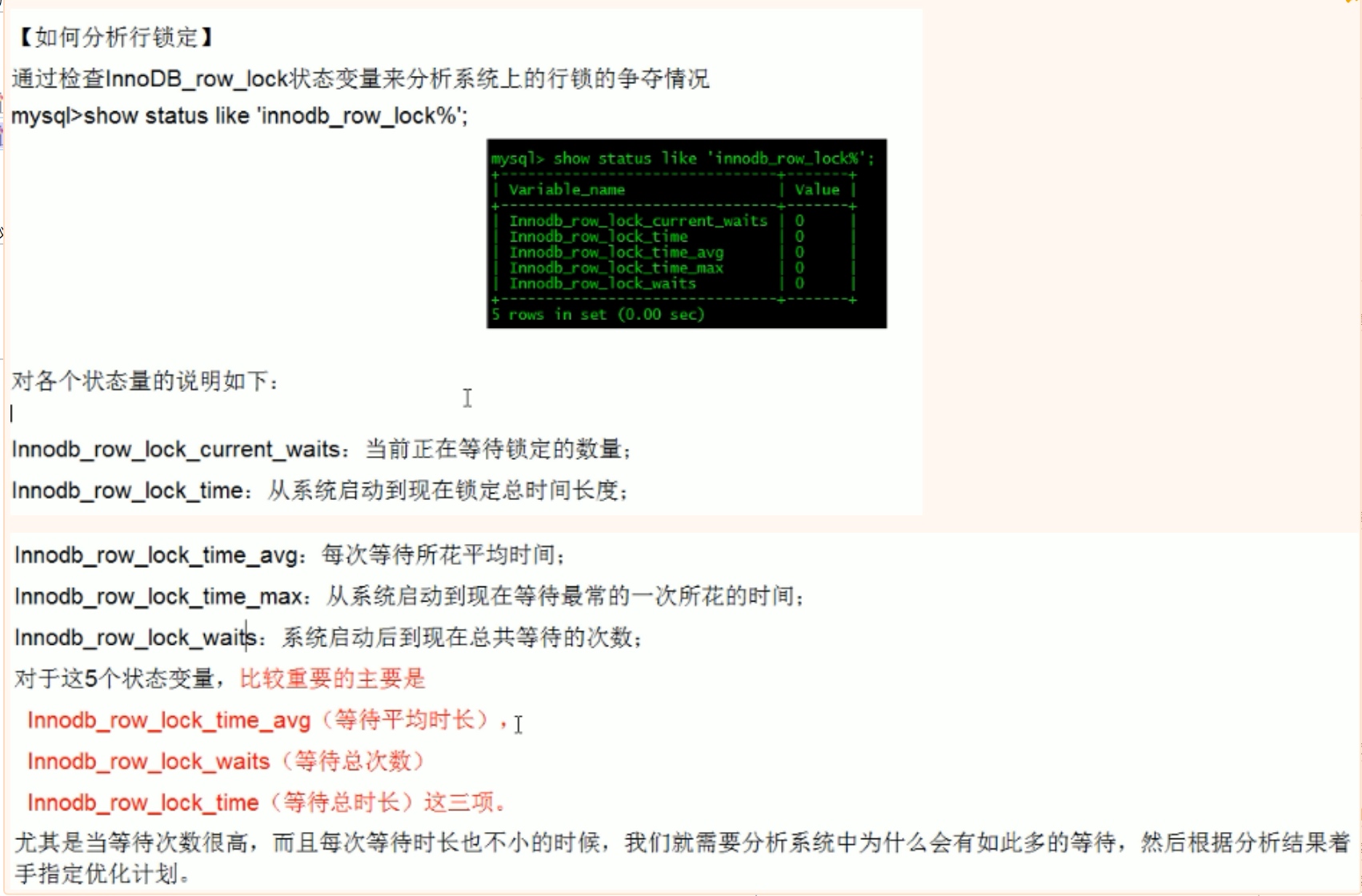 偏向InnoDB存储引擎,开销大,加锁慢;会出现死锁;锁定粒度最小,发生锁冲突的概率最低,并发度也最高。