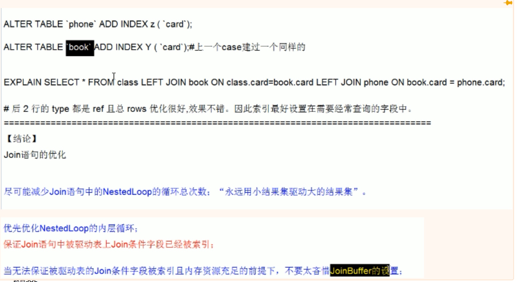 单表 多表 连接查询 要把索引建立在相反的一边 比如 left join 就把索引建立在右表中