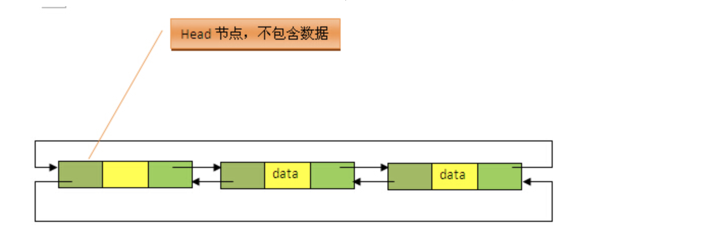 LinkedList底层的数据结构是基于双向循环链表的,且头结点中不存放数据,如下: