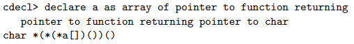通过类型转换,cdecl也可以用于解释复杂的声明,指出参数应该进入哪一对括号(如同在上述的复杂函数定义中)。