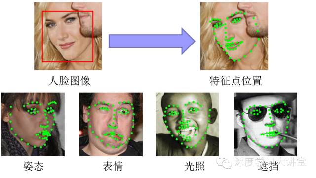以上基于级联形状回归和深度学习的方法对于大姿态(左右旋转-60°~+60°)、各种表情变化都能得到较好的定位结果,处理速度快,具备很好的产品应用前景。针对纯侧面(±90°)、部分遮挡以及人脸检测与特征定位联合估计等问题的解决仍是目前的研究热点。