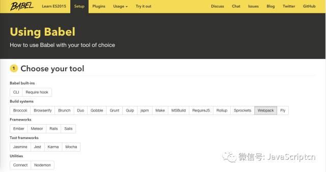 Babel是一个广泛使用的ES6转码器,可以将ES6代码转为ES5代码,从而在现有环境执行。大家可以选择自己习惯的工具来使用使用Babel,具体过程可直接在Babel官网查看: