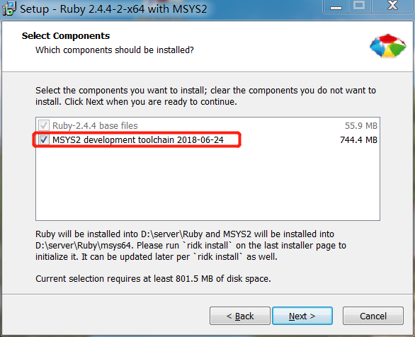 MSYS2是Ruby常用的开发工具,可以选择性安装哦,以后也可以单独进行安装。