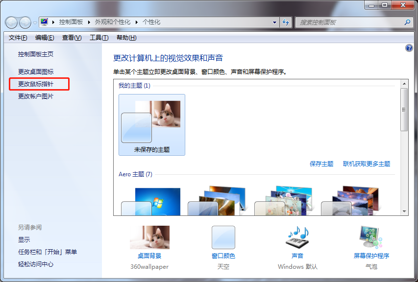 4.安装过的指针包就存在电脑里了,可以随时进行切换。只需要在个性化里就可以切换了。