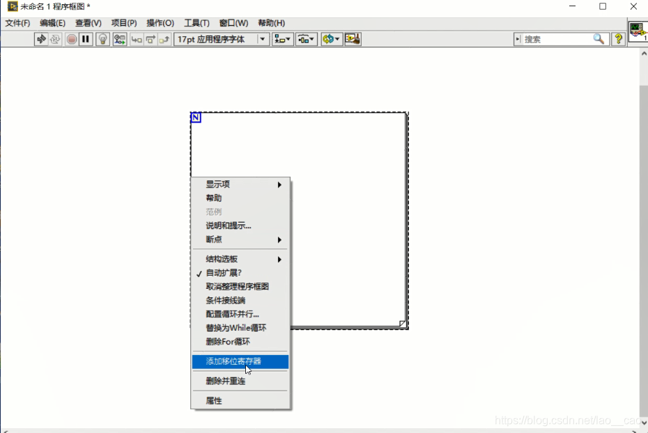 1、新建一个for循环,点击循环边框,右键添加移位寄存器。