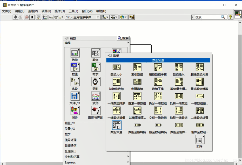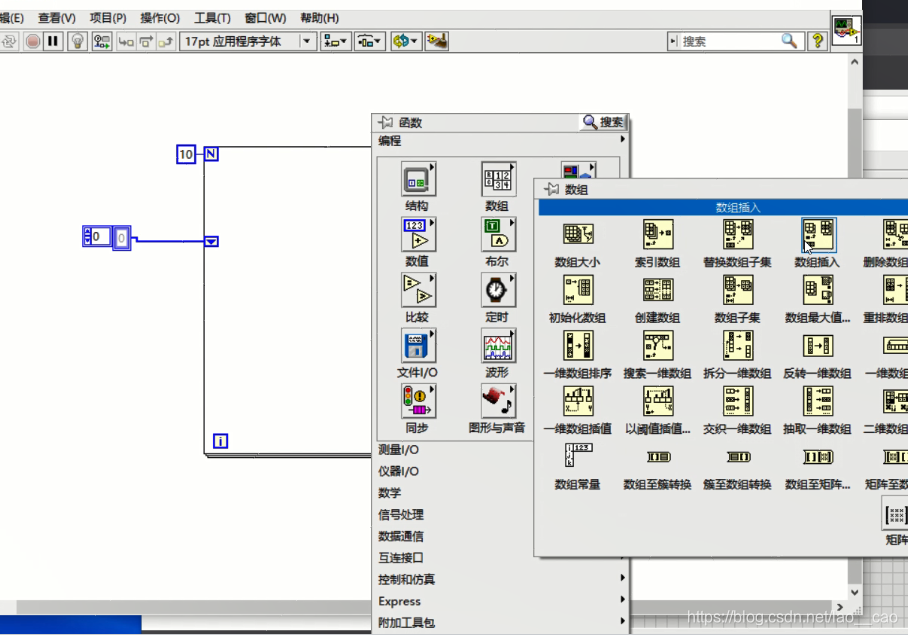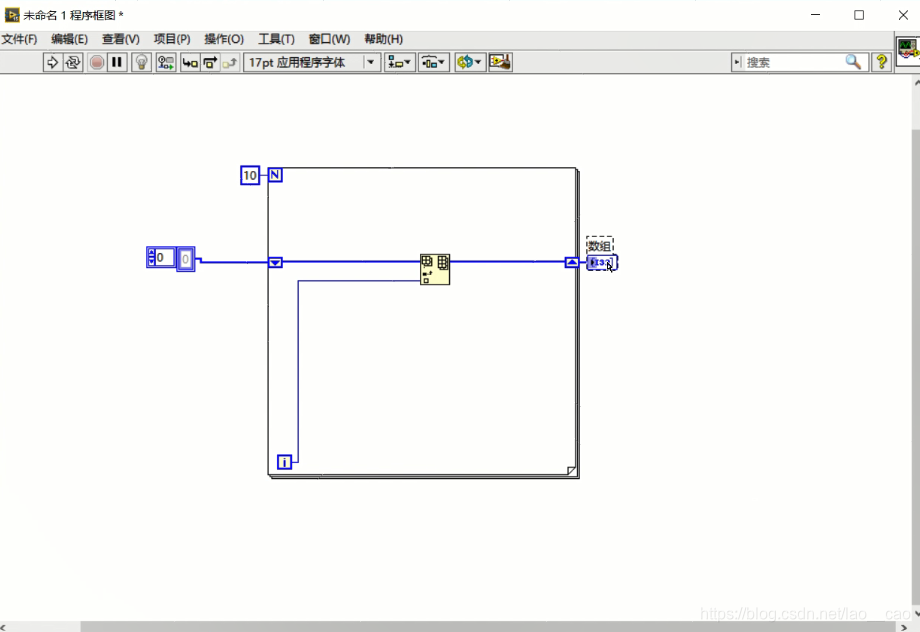 3、移位寄存器我还经常用来初始化一个数组,在C语言里面,数组要一开始就声明,不能根据实际情况进行改变数组大小,在面向对象的语言中(C#等)是有提供动态数组的类型的,那labview有没有呢?labview本身没提供这种类型,但是却可以通过移位寄存器实现。在编程->数组->数组常量 拖拉处一个未激活的数组常量,再编程->数值->数值常量,拖拉一个数值常量到数组常量中,它们会合并激活成一个可用的空数组,数组类型由我们拖拉进去的变量决定,可以放字符串,簇等,簇在编程->簇,类与变体 中可以找到,簇其实相当于C语言里面的结构体,类还是那个面向对象的类,变体相当于面向对象语言中的泛型,可以用一个变量表示所有变量,最后通过变量转换,转成目标变量。扯远了,这里就是讲一下语言之间的共通性,学好一个,确实可以举一反三,融会贯通(又扯远了)。