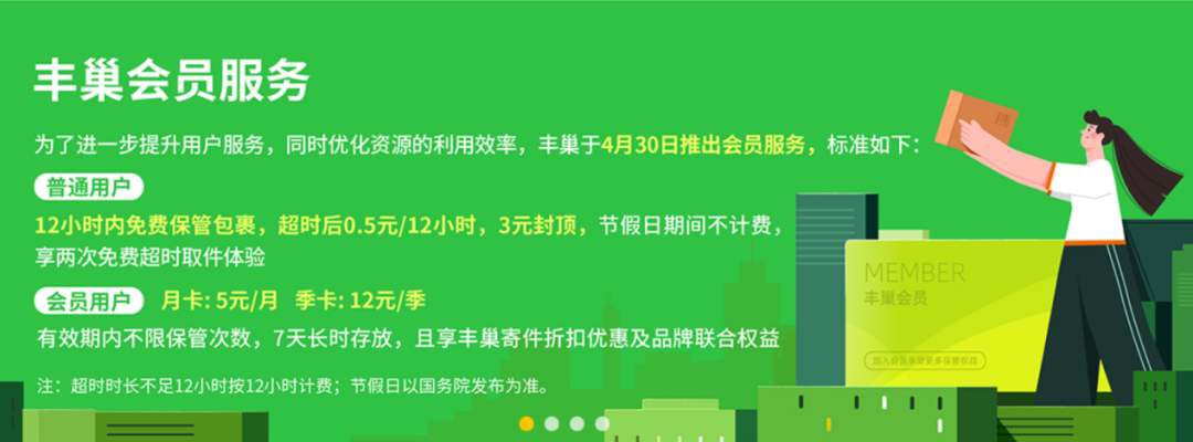 2020年5月8日消息,4月30日起,丰巢快递柜开始实行超时收费的“会员制”,非会员包裹只可免费保存12小时,超过需收取0.5元/12小时的费用,收费引发广泛关注和质疑 。就是说如果快递小哥没有允许就私自把快递放到丰巢,之前无所谓,现在要产生费用,用户不乐意了。
