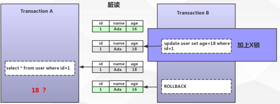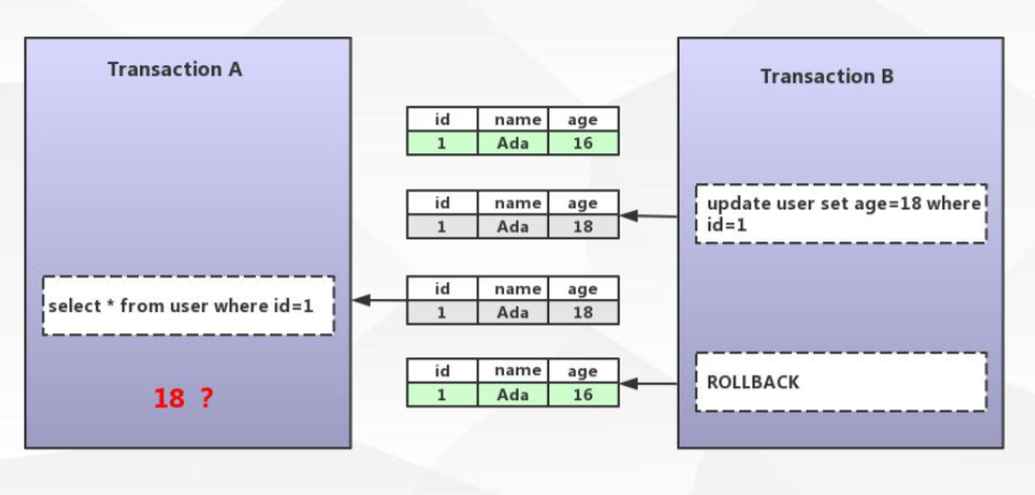 脏读: 事务A 读到了事务B 未提交的数据