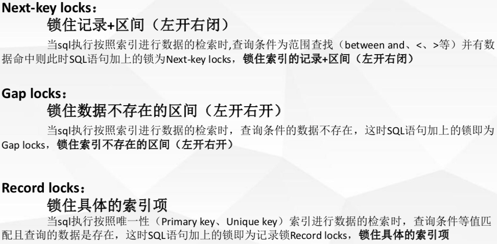 记录锁(Record Locks)&间隙锁(Gap Locks)&临建锁(Next-key Locks)