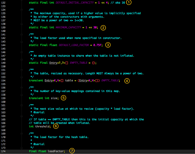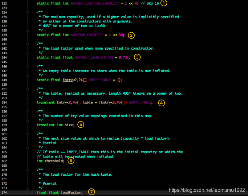 这是 HashMap 中比较核心的几个成员变量;看看分别是什么意思?