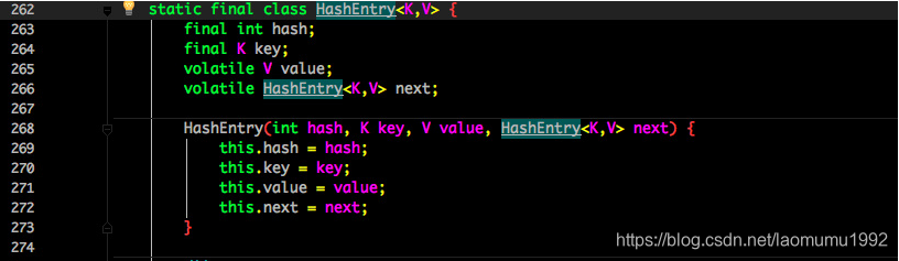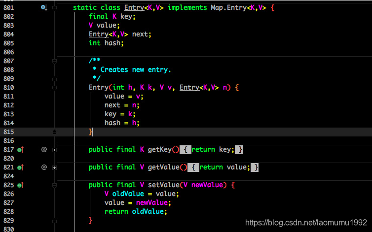Entry 是 HashMap 中的一个内部类,从他的成员变量很容易看出: