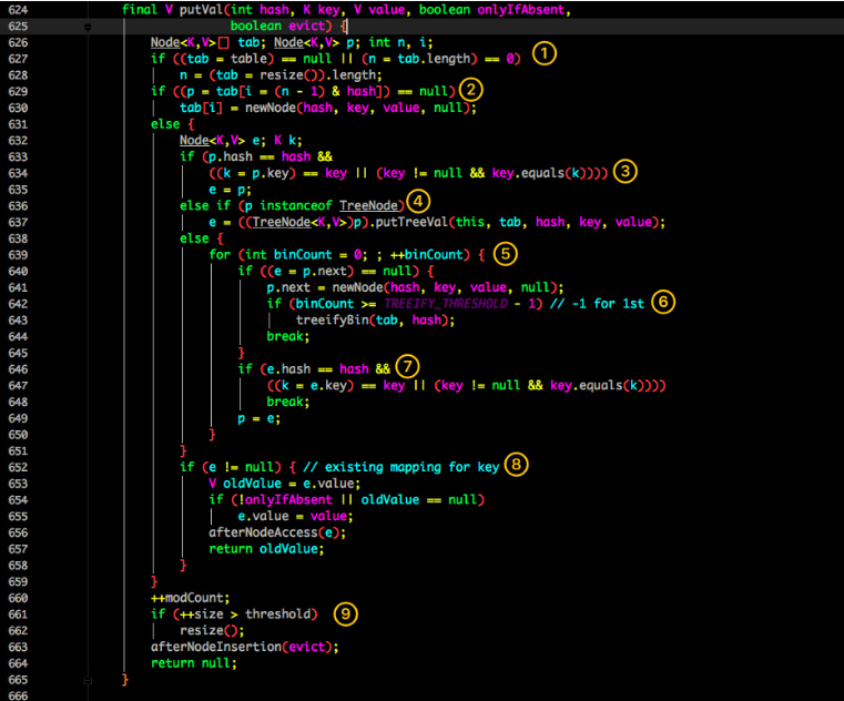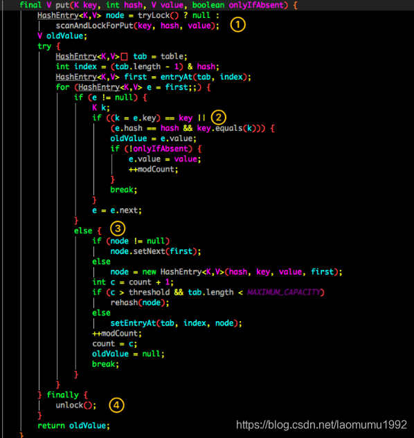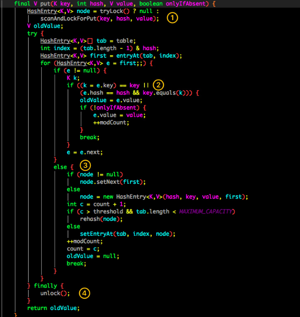 final V put(K key, int hash, V value, boolean onlyIfAbsent) {