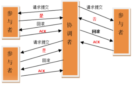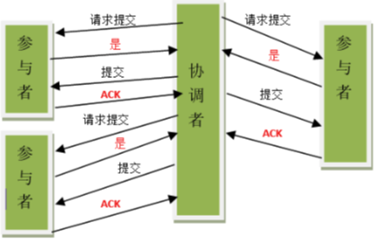 在这个阶段,协调者会根据各参与者的反馈情况来决定最终是 否可以进行事务提交操作,正常情况下包含两种可能:执行事务、 中断事务