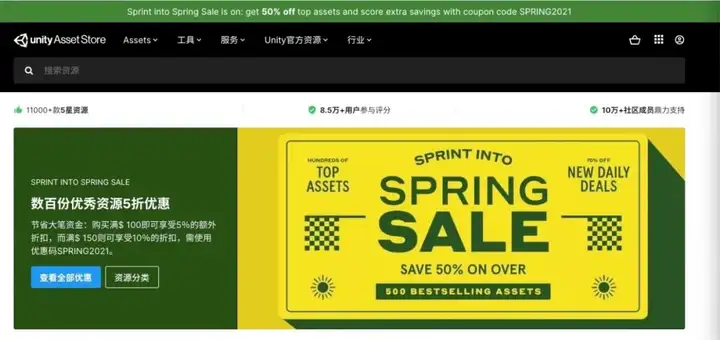 这两个引擎也都有自己的资产商城(Unity Asset Store & Unreal MarketPlace)。你可以在资产商城以免费或一定价格买到3D模型、纹理、系统等。对于那些可能不是艺术家或在某个领域缺乏知识的开发人员来说,这些功能非常有用。