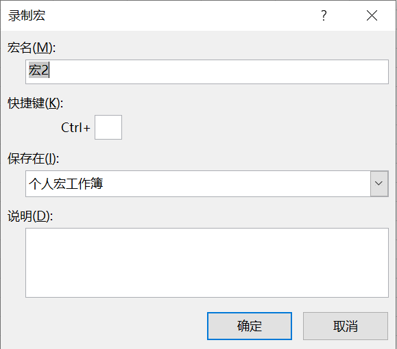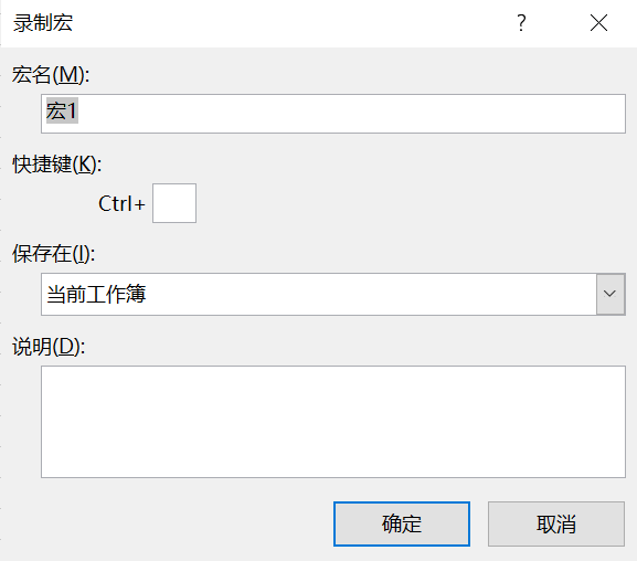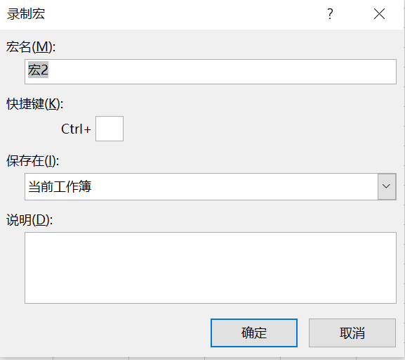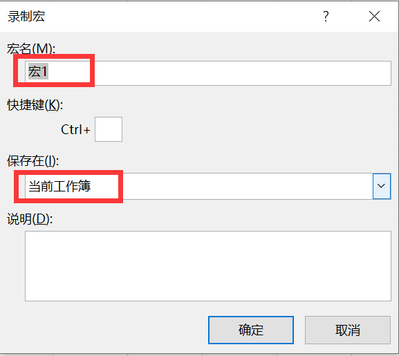 开发工具->录制宏,弹出如下图: