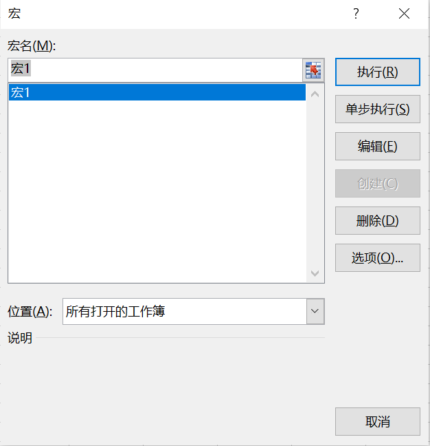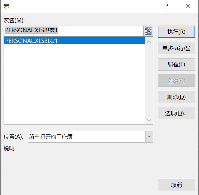 弹出宏的对话框,如下图:
