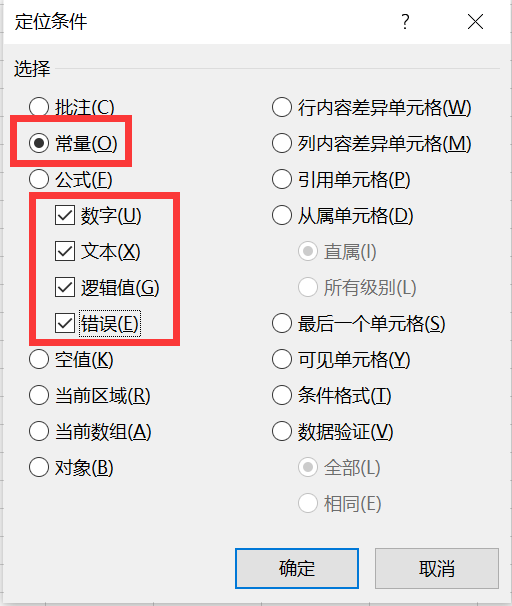 勾选常量,只保留数字,其他的都去勾选,点击确定按钮,弹出如下图: