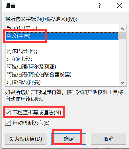 全角和半角只适用于英文,文字里有波浪线的也不用管,如果想去掉点击审阅->语言->设置校对语言,弹出语言对话框,勾选不检查拼写或语法,点击确定就OK了,如下图: