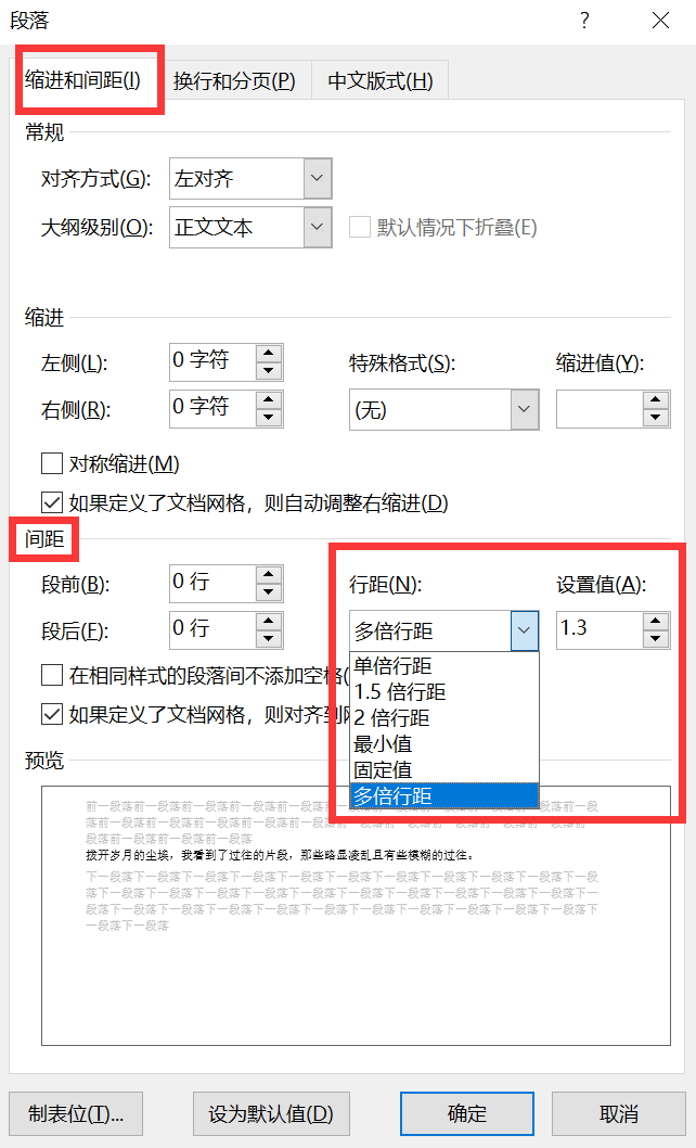 最小值和固定值基本用不到,自己设置就选择多倍行距,后面设置一个值就行,点击确定按钮即可实现