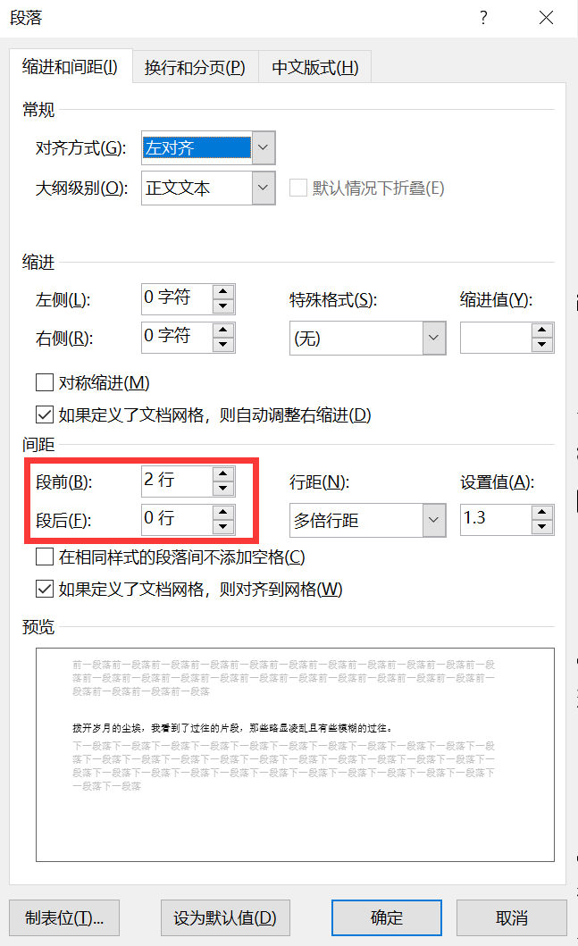 增加段落前的空格和增加段落后的空格:根据情况选择,也可以点击如下图: