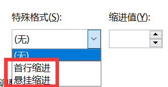 选择首行缩进,缩进值默认是2,就是段落的第一行缩进2字符,选择悬挂缩进,正好和首行缩进相反,还可以用下面的方法实现缩进,如下图: