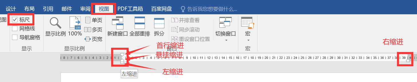 点击确定按钮,再点击视图,勾上标尺,在10,20,30那就会出现L,如下图:
