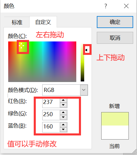 颜色RGB(Red、Green、Blue),主要是三种颜色,度量值必须界于0和255之间,点击字体颜色->其他颜色,弹出如下图: