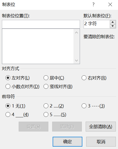 ,弹出段落对话框,点击左下角的制表位,弹出如下图: